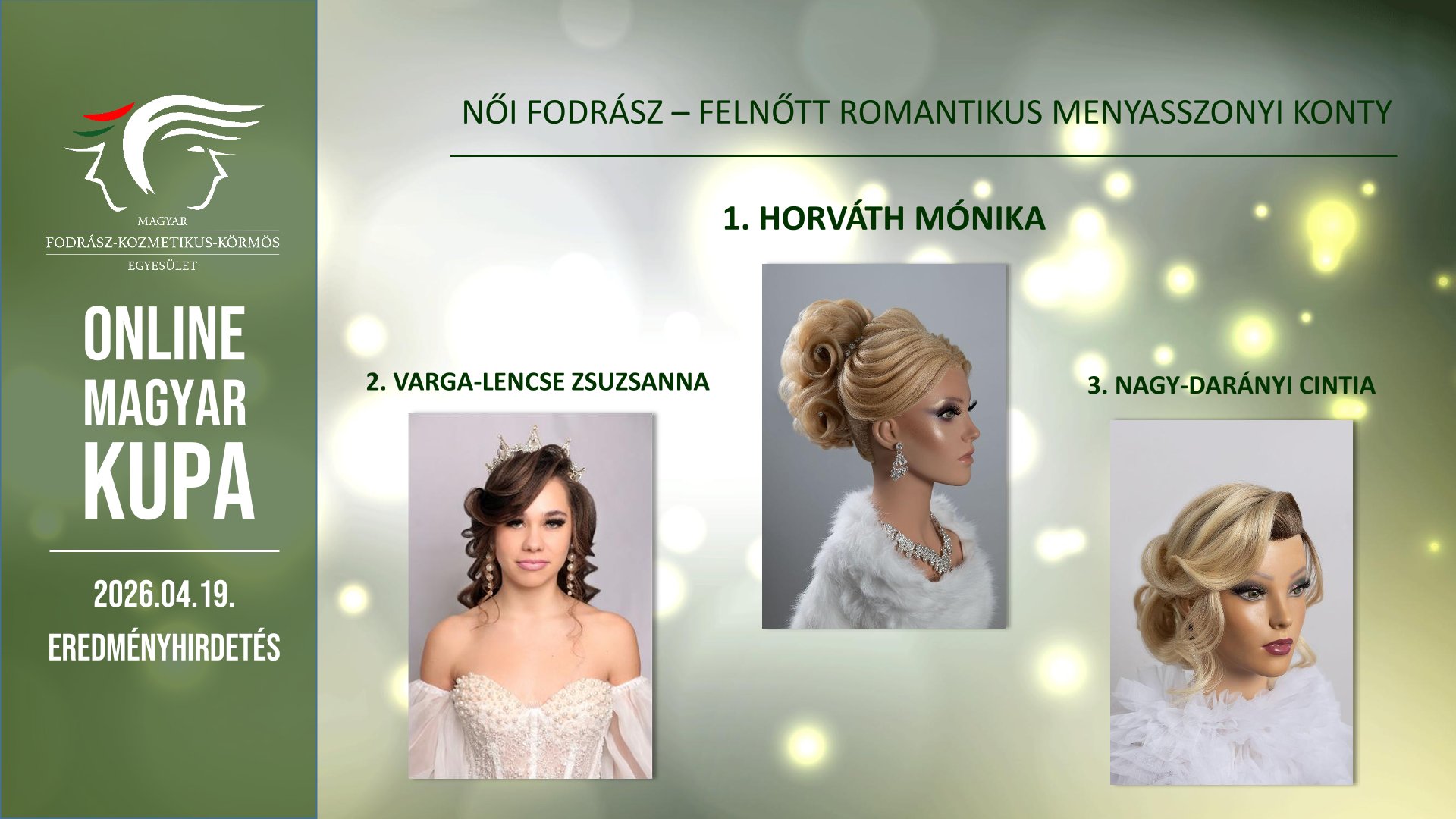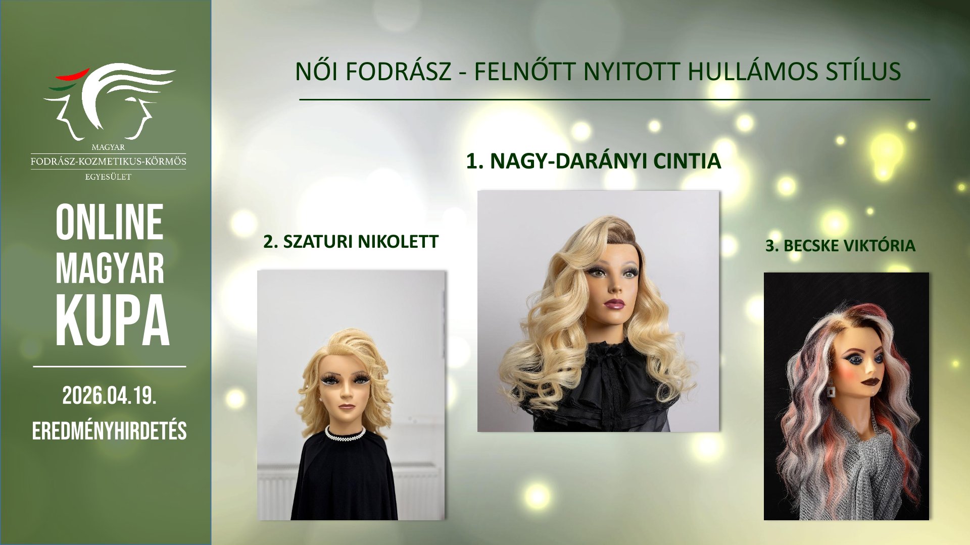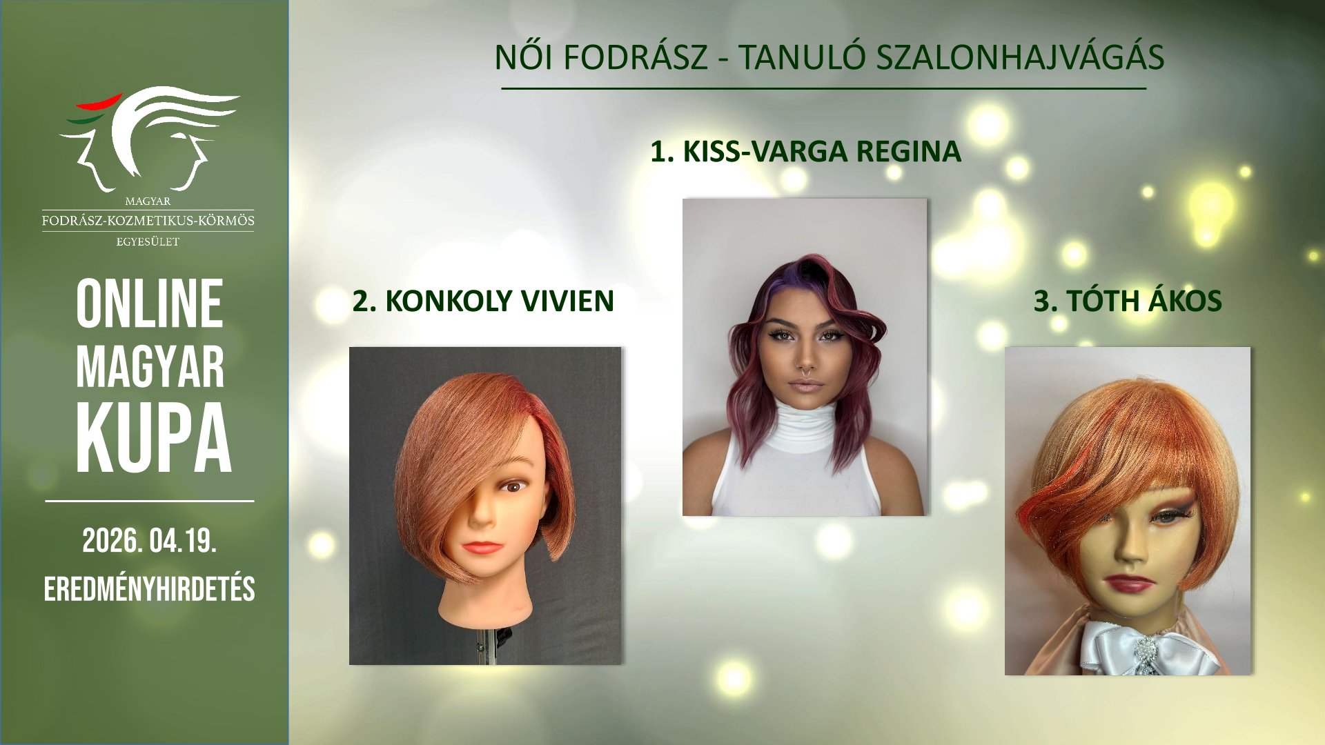 Április 19.-én, vasárnap Balatonfüreden lezajlott a 2026-os Magyar Kupa - Fotópályázat eredményhirdetése. 250 nevezés érkezett női fodrász, férfi fodrász, smink és körmös szakágban. Felnőtt és tanuló versenyzők egyaránt megméretették magukat a fotópályázaton. Szebbnél-szebb pályamunkák érkeztek be az egyesületbe!