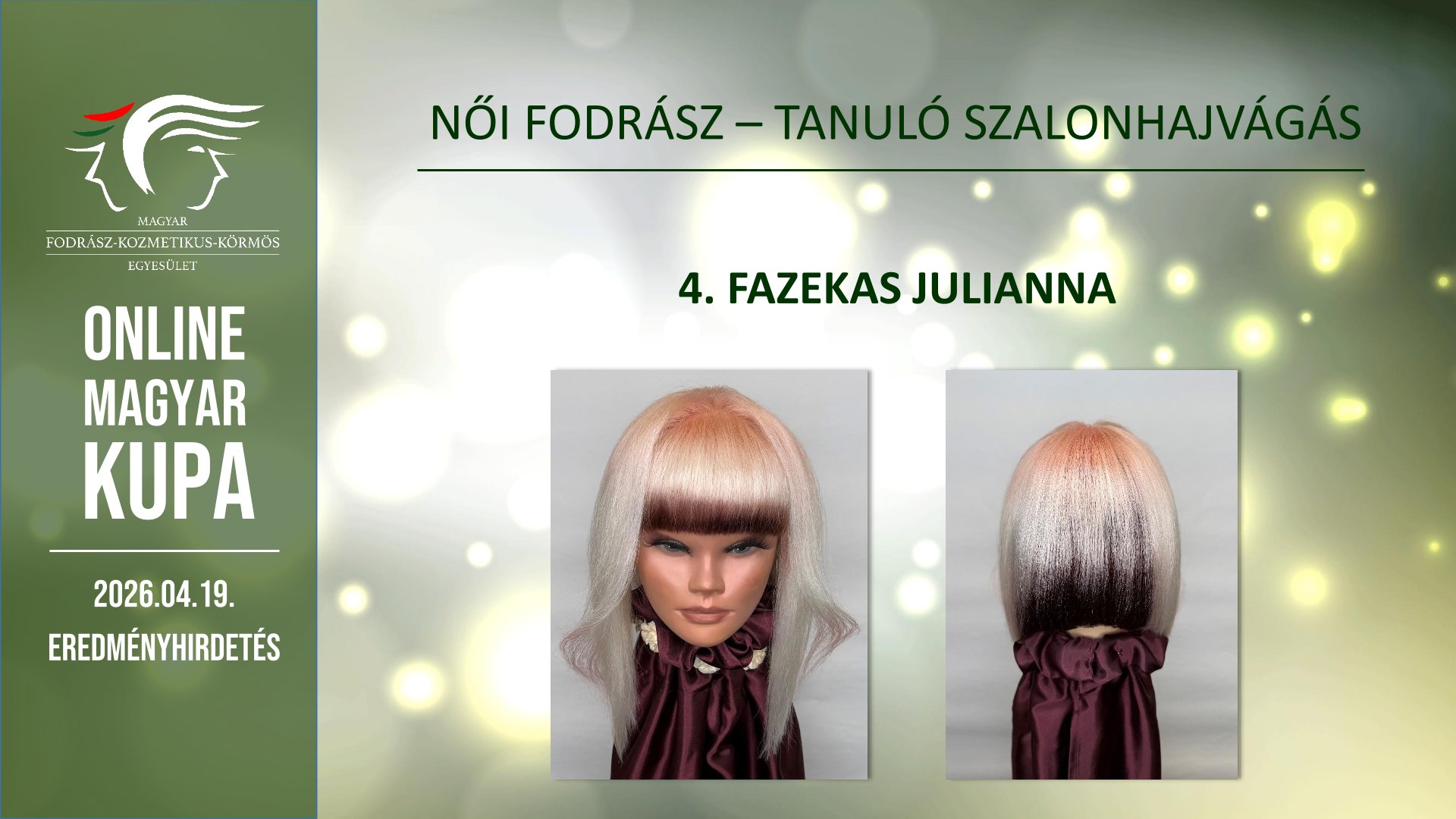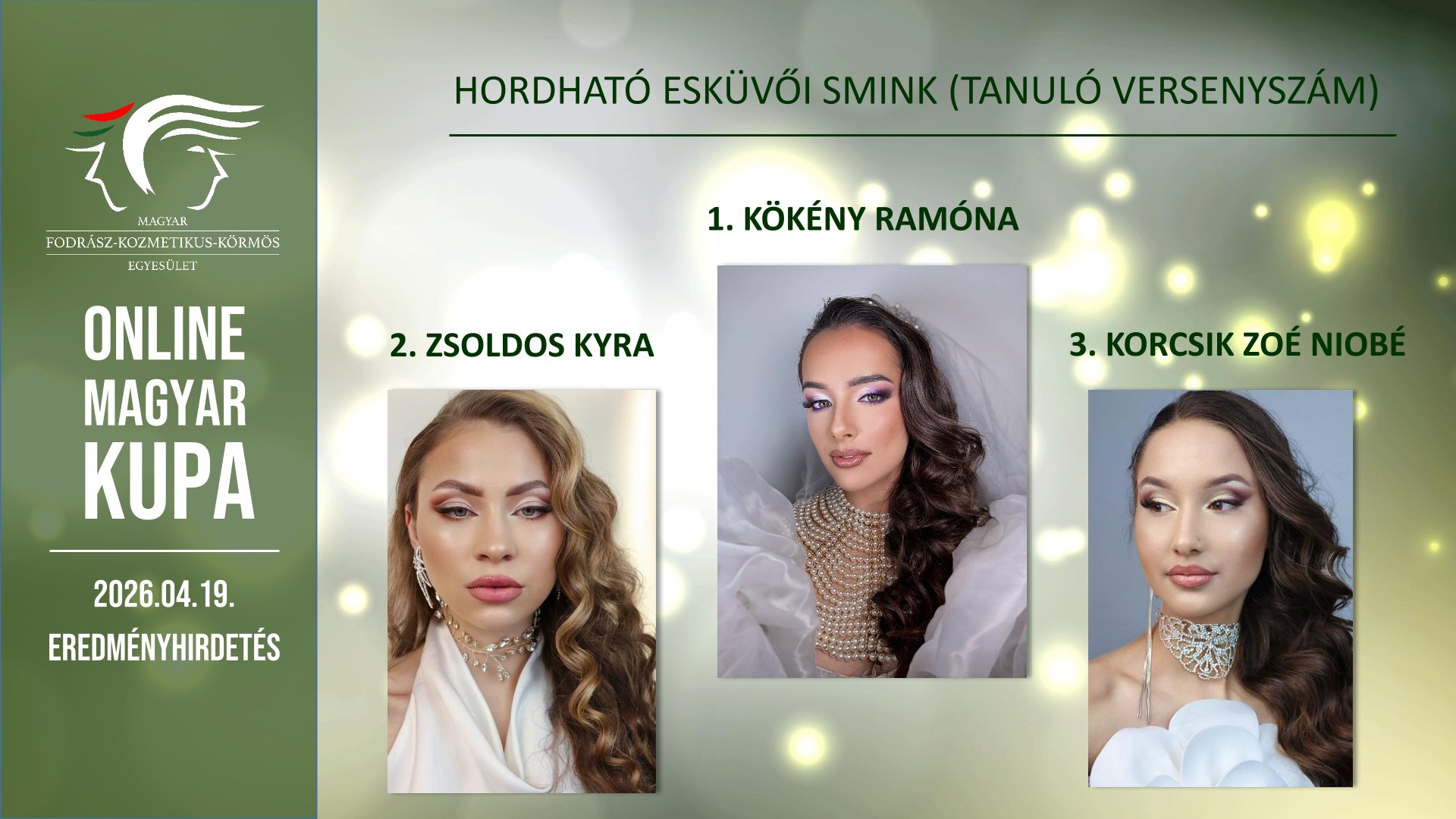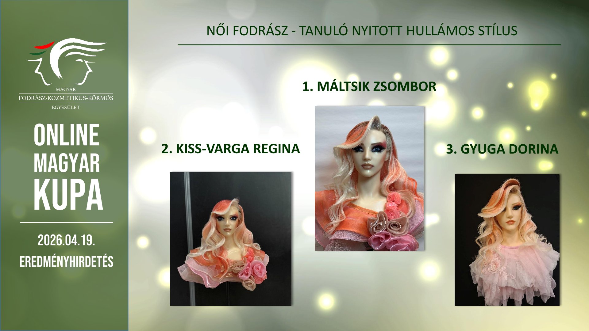 Április 19.-én, vasárnap Balatonfüreden lezajlott a 2026-os Magyar Kupa - Fotópályázat eredményhirdetése. 250 nevezés érkezett női fodrász, férfi fodrász, smink és körmös szakágban. Felnőtt és tanuló versenyzők egyaránt megméretették magukat a fotópályázaton. Szebbnél-szebb pályamunkák érkeztek be az egyesületbe!